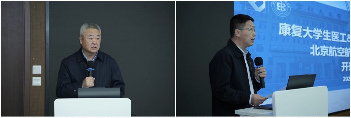 开班式上,董尔丹代表康复大学对北京航空航天大学的精心安排表示感谢。他强调,康复大学以健康促进为办学理念,致力于培养“懂生命”的医工交叉拔尖创新人才。对于智能医学工程专业的学生而言,不仅需要掌握人工智能、机器人等前沿技术,更要深刻理解这些技术如何服务于临床实践——既能敏锐地在医学领域发现问题,也能依托扎实的工程能力提出解决方案,真正实现从临床需求到工程创新的全链条闭环。他表示,期待康复大学与北京航空航天大学进一步深化合作,携手为健康中国战略贡献智慧与力量。吕卫峰代表北京航空航天大学对康复大学师生的到访表示热烈欢迎。他指出,此次访学是两校落实战略合作协议、在医工交叉领域携手培育拔尖创新人才的具体实践,期待未来双方能以此为契机,持续深化在人才培养与学科建设等方面的交流合作。