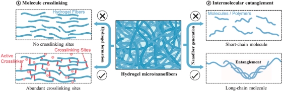 图2.水凝胶纤维制备的双重关键:充足交联位点与有效分子缠结