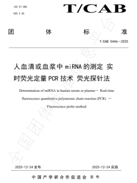 12-232025年12月,由周祺惠研究员参与制定的团体标准《人血清或血浆中miRNA的测定 实时荧光定量PCR技术 荧光探针法》(标准号:T/CAB 0446-2025)正式发布实施。该标准由中国产学研合作促进会归口,联合青岛瑞思德医学检验实验室有限公司、温州医科大学、康复大学等20余家单位共同起草,是周祺惠研究员团队在核酸检测技术领域科研实力与行业影响力的重要体现。miRNA作为重要的基因表达调控分子,其在血清或血浆中的检测对疾病早期诊...